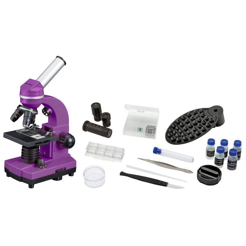 Комплектация Микроскоп: пластиковый корпус<br />Объективы: 3 шт.<br />Окуляр: 2 шт (широкоугольные)<br />Линза Барлоу: 1 шт.<br />Адаптер для камеры смартфона (планшета)<br />Инкубаторий<br />Микротом<br />Набор аксессуаров для препарирования<br />Препараты: 2 шт (яйца креветок, дрожжи)<br />Подготовленные слайды: 4 шт.<br />Предметные стекла: 6 шт<br />Покрывные стёкла: 10 шт.<br />Батареи АА (LR6) - 3 шт<br />Защитный чехол