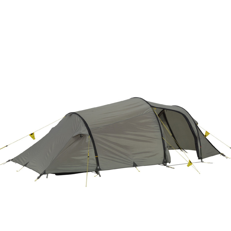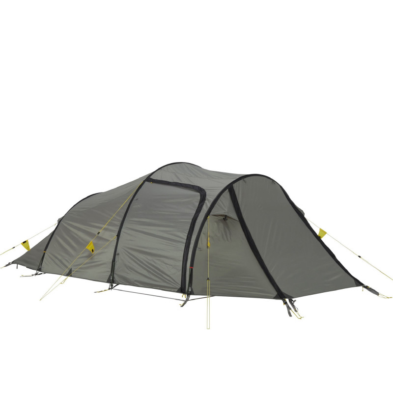 Секрет успіху цього унікального в своєму роді і багатофункціонального намету криється у великому внутрішньому просторі, який можна варіювати, і в порівняно малій власній вазі. Wechsel Outpost 3 - це чи не єдиний намет для користувачів з зростом понад 2 метри, це також незамінна модель для походів, коли необхідність у великій пощі тамбура або великої площі внутрішнього намету може змінюватися протягом походу. Асиметрична тунельна конструкція формує великий внутрішній простір. Бічні і торцеві двері забезпечують зручний вхід в намет кожного з користувачів, не порушуючи спокій сусіда. Бічний вхід зовнішнього тенту оснащений повноцінною москітною сіткою. Торцевої вхід може бути використаний як велике панорамне вікно, а торцева двері, зафіксовані розтяжками на стійках або трекінгових палицях (купуються окремо), формують великий навіс від сонця або опадів. Поліуретанове покриття тенту і дна намету забезпечує водозахист до 7000 мм і високу стійкість до проколів, що вельми важливо при використанні намети, як в лісистій, так і на кам'янистій місцевості. Додаткова підлога (купується окремо) захищає основну підлогу намету від пошкоджень і формує підлогу тамбура.