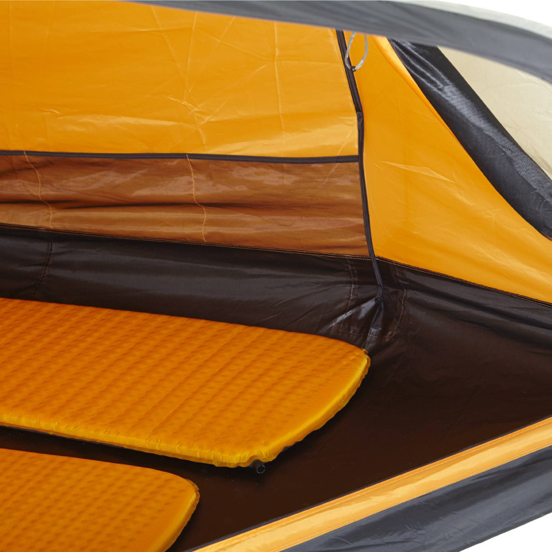 • Матеріал зовнішнього тента: Polyester 68D Ripstop PU DWR, 5000 мм в.ст., проклеєні шви, зміцнююча структура Ripstop, поліуретанове покриття і водовідштовхуюче просочення, щільність - 81г/м², міцність на розрив - 2,5кг.