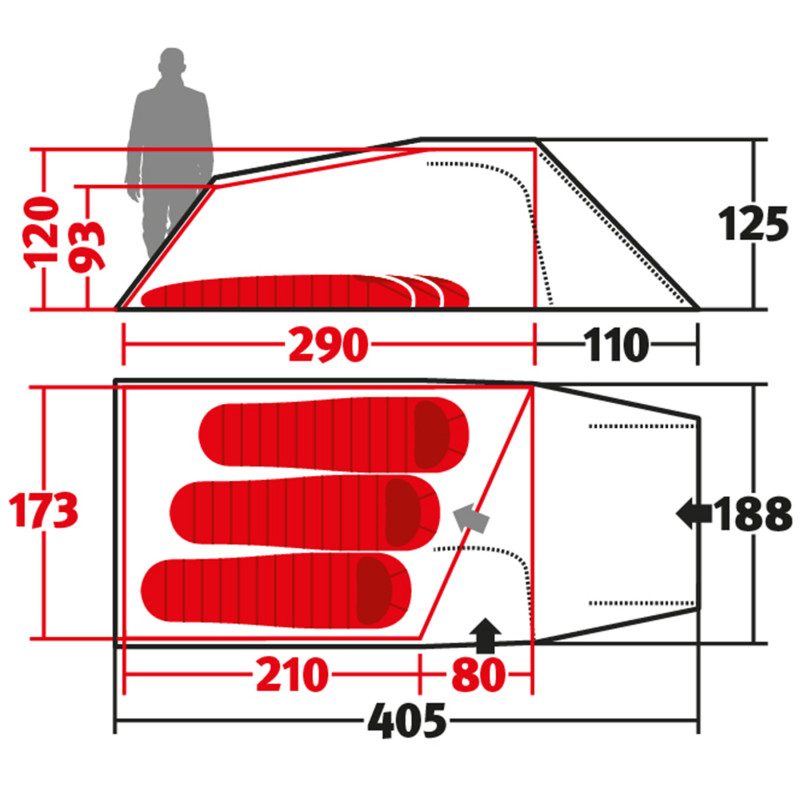 • Зовнішній намет (Д х Ш х В): 405 х 188 х 125 см