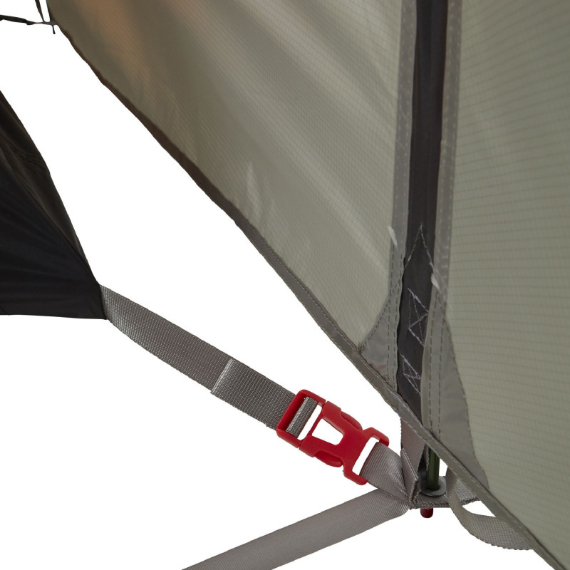 • Зовнішній тент має спеціальний стягуючий ремінь знизу, що дозволяє зафіксувати периметр намету і збільшити його стійкість