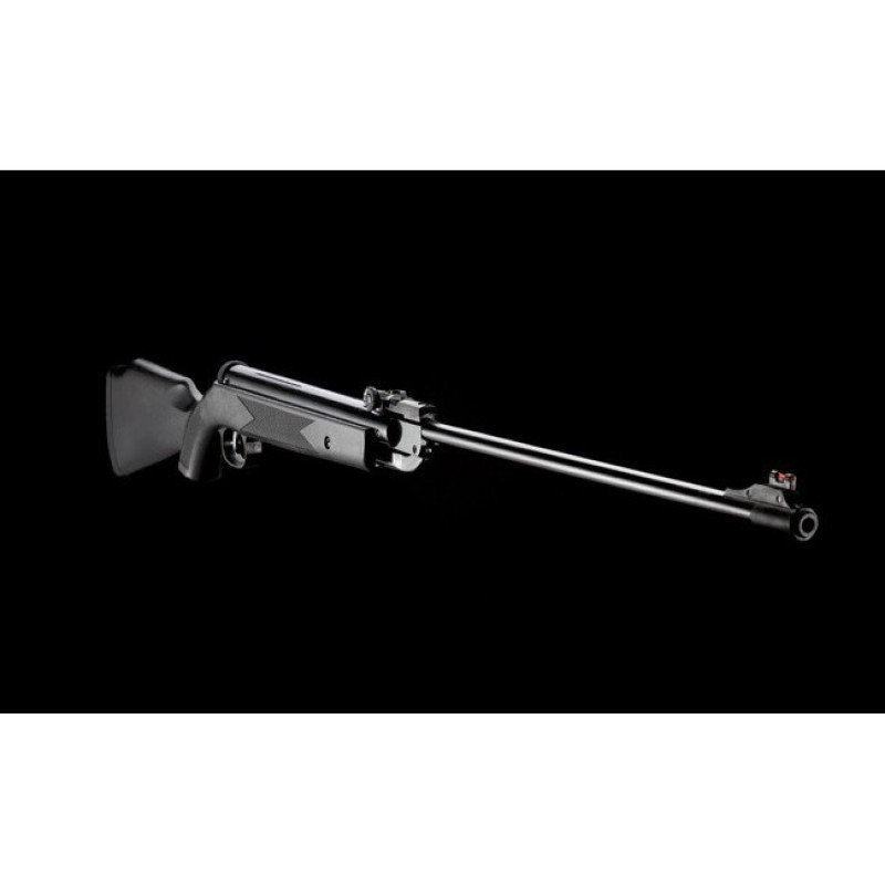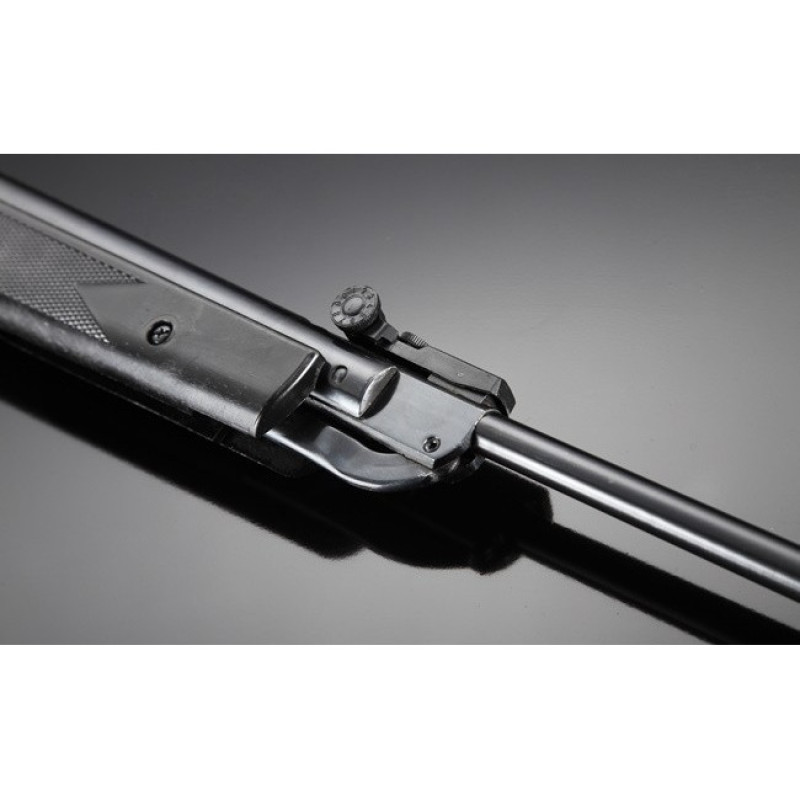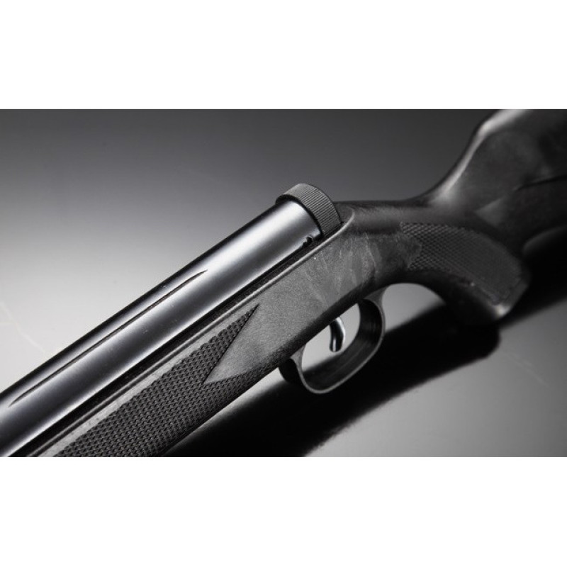 Взвод осуществляется с помощью "перелома" ствола винтовки. Также на винтовке установлена регулируемая прицельная планка с мушкой. Возможна установка оптического прицела (прицел приобретается отдельно).Начальная скорость полета пули обеспечивается до 170 м/с.Ствол данного ружья оборудован специальной защелкой, которой нет на других “переломках”. Защелка обеспечивает хорошую фиксацию ствола в ствольной коробке.В качестве антискользящих элементов служат ложи со специальными продольными выемками, которые находятся в зоне хвата опорной руки.Резиновый затыльник обеспечивает отличное поглощение отдачи.Оптический прицел не входит в комплект, но есть основа типа “ласточкин хвост”, которая создана для установки оптики.