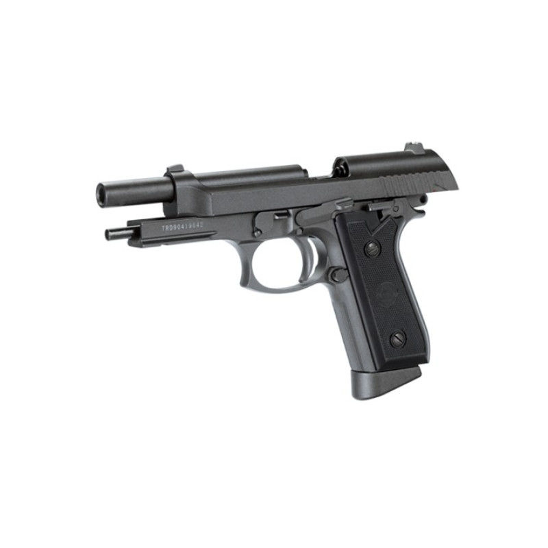Обойма пистолета M92 KWC рассчитана на 19 пуль. Для выстрела используются стандартные ВВ шарики калибра 4,5 мм. Надежный и простой механический флажковый предохранитель будет одинаково удобным как для правши, так и для левши. KWC KMB 15 имеет нерегулируемые прицельные приспособления открытого типа. Этот качественный и добротный пистолет с хорошими техническими характеристиками придется по вкусу, как новичкам, так и опытным стрелкам.