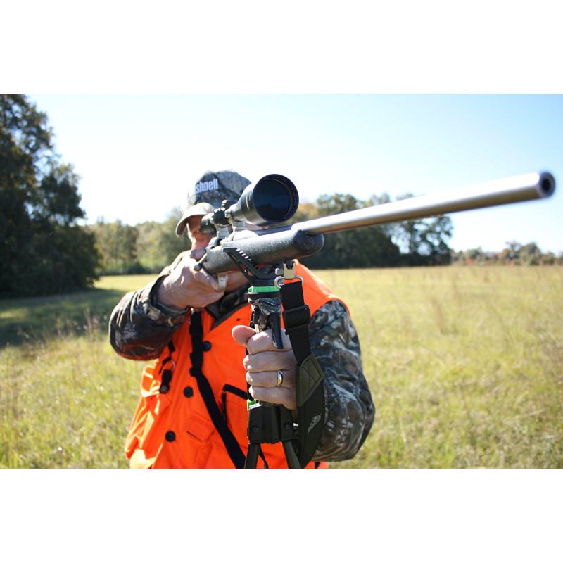 Ця двунога під зброю відносно легка і може налаштовуватися по висоті. Установка максимально швидка: досить натиснути на важіль, а відпустити після того, як ви відрегулювали висоту. Відбувається все це безшумно, що дуже важливо в мисливському справі. Опори виготовлені з високоміцного алюмінієвого сплаву з анодованим покриттям. Крім того, бипод можна використовувати в якості штатива для оптики або камери (з'єднання 1/4"-20 і 3/8").