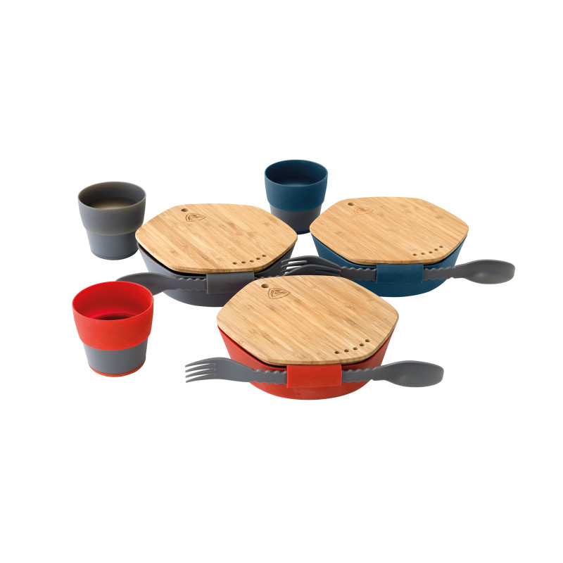 - Приймати Їжу в поході стало легко - шість предметів в одному наборі: миска, кришка/обробна дошка, ложка, виделка, чашка, коннектор.