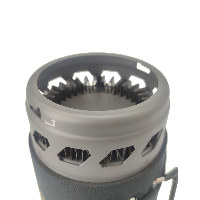 Є зручна рукоятка у Казанка. Дно можна з'єднати, або розібрати. Також є захист від поривів вітру. Теплоізоляційна тканина навколо Казанка перешкоджає тому, щоб користувач обпікся, використовуючи дану систему. Електронний метод запалювання, не потрібно виконувати це вручну. Казанок зроблений зі стійкого до пошкоджень і надійного алюмінію. Потужність горіння становить 3658 ВАТ.