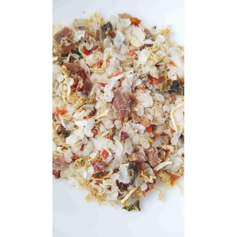 Приготовлено з сушених продуктів, що зберегли всі смакові якості натуральних. Не використовуються підсилювачі смаку і консерванти.