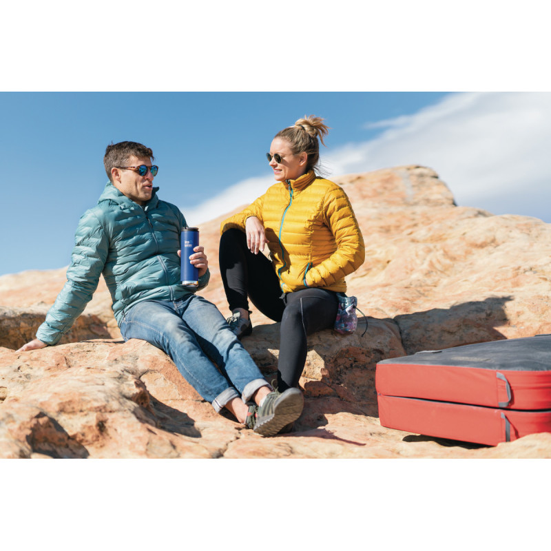 Конструкция Climate Lock с внутренней пунктирной резьбой TK Closure™ гарантирует долгое сохранение температуры напитков: у стальной вакуумной колбы нет неизолированных одностенных частей. За счет этого многоразовая термобутылка Klean Kanteen TKWide 592 ml поддерживает температуру горячих напитков до 17 часов, напитков со льдом — до 58 часов.