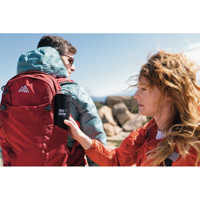 Конструкция Climate Lock с внутренней пунктирной резьбой TK Closure™ гарантирует долгое сохранение температуры напитков: у стальной вакуумной колбы нет неизолированных одностенных частей. За счет этого многоразовая термобутылка Klean Kanteen TKWide 592 ml поддерживает температуру горячих напитков до 17 часов, напитков со льдом — до 58 часов.