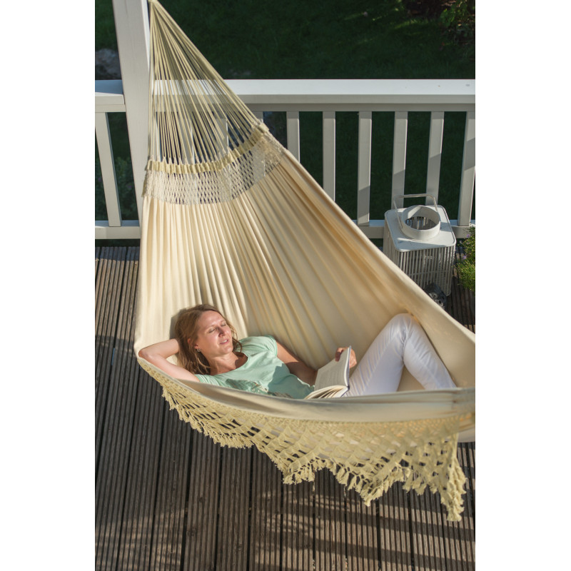 Дополнительный комфорт в результате большого количества подвесных канатов: с помощью большого количества канатов, которые соединяют сукно гамака с системой для подвешивания, оптимально распределяется вес тела в гамаке, что обеспечивает неповторимое чувство лёгкости.