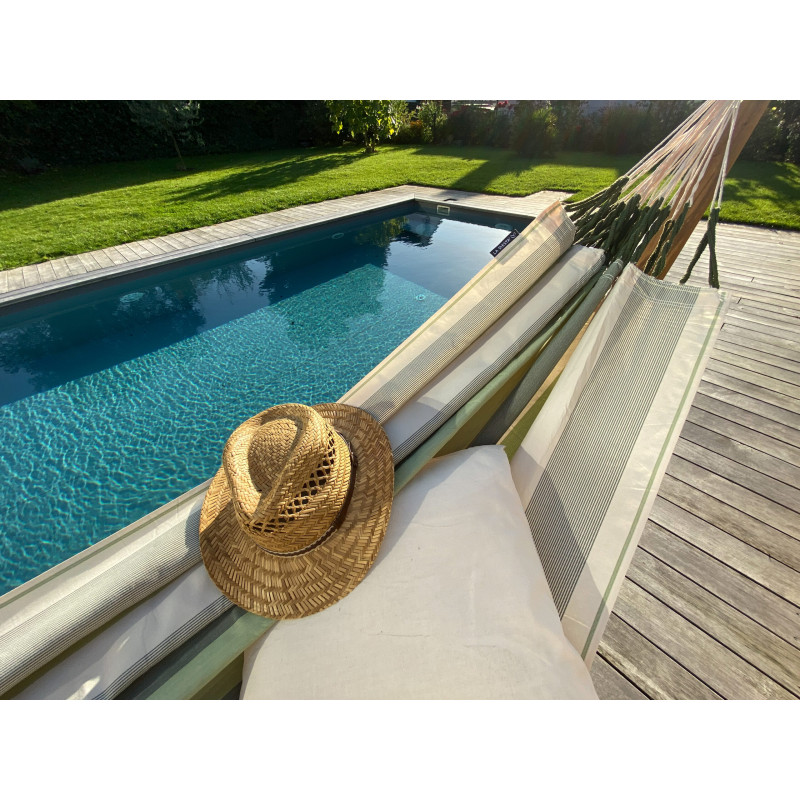 Его тканевое волокно делает гамак Brisa прочным, устойчивым к атмосферным воздействиям и позволяет быстро высохнуть. Использована самая популярная форма латиноамериканских гамаков, без поперечных ребер жесткости, предназначенная для провисания. Идеально подходит для дома или дачи, для одиночного, парного или семейного использования. Уход и хранение: