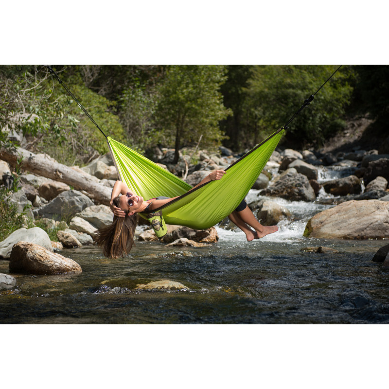 Гамак оснащен интегрированной системой подвешивания Easy Adjust, которая рассчитана специально для путешествий. Данная система включает прочные полимерные канаты, длиной в 2 или 3 метра, что позволяет установить его, даже если стойки находятся на большом расстоянии. Погодоустойчивые крючки для подвешивания изготовлены из полиамида с добавлением стекловолокна для большей прочности.