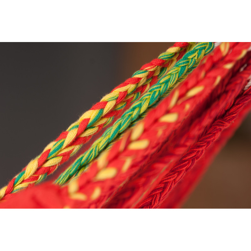 Ручное плетение, считаются наиболее качественными. Они называются Кадехос. В сочетании с множеством подвесных шнуров они обеспечивают оптимальное распределение веса, что делает гамак чрезвычайно удобным и в то же время увеличивает его долговечность.