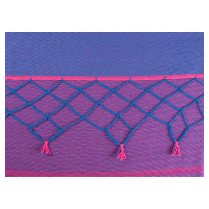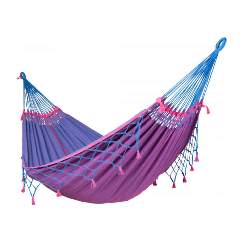 Традиционная плетёная сеть бразильских подвесных гамаков, украшенная бахромой, искусно объединяет пространство для лежания с приспособлениями, служащими для подвешивания гамака. Плетёная сеть с бахрамой является не только эстетическим украшением, она также оптимально распределяет вес тела по обеим сторонам на подвесные шнуры и при этом обеспечивает дополнительный комфорт.