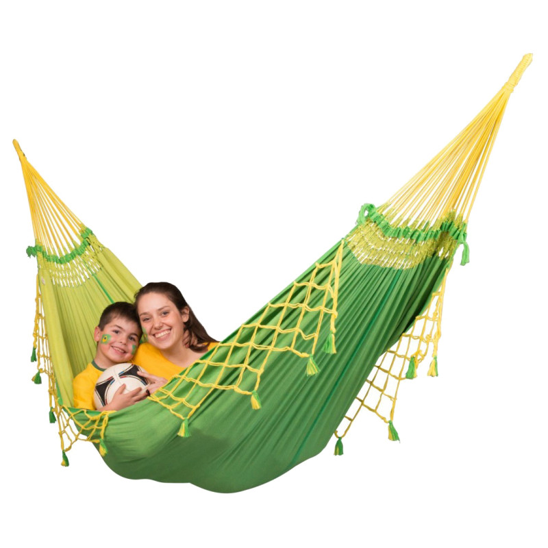 La Siesta Copa высококачественный двойной гамак изготовленный из чистого органического хлопка. Он сочетает в себе традиционное бразильское мастерство с качеством и исключительным комфортом. COPA — это дань Бразилии и футболу, и она доступна в четырех выбранных цветах команды.