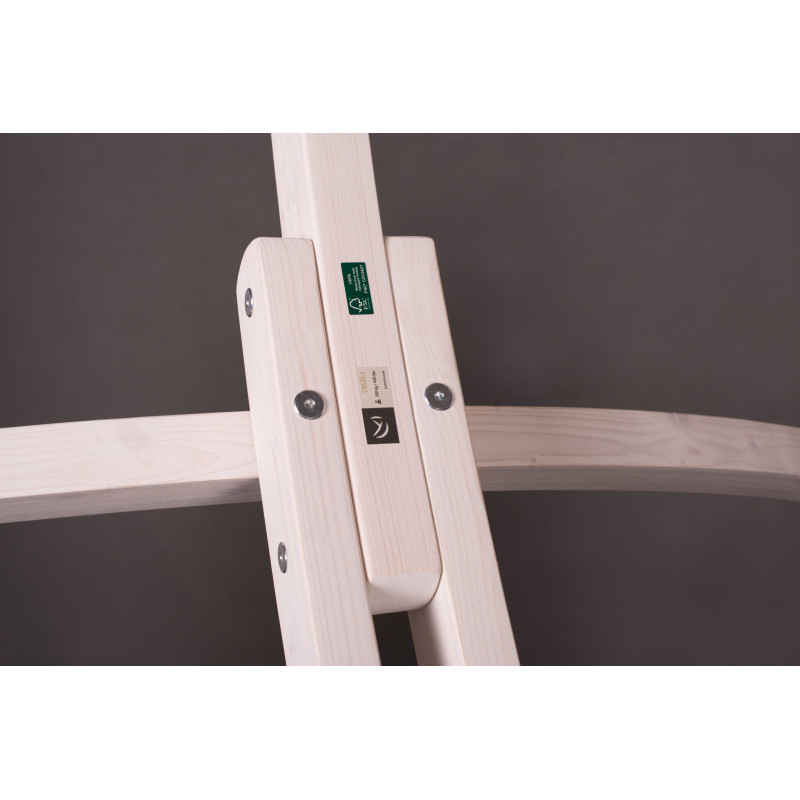 Стойка выполненная из натуральной древесины скандинавской ели, которая славится удивительной прочностью и плотностью своих волокон. Это идеальный материал для производства основы для гамаков, ведь главное правило, предъявляемое к ней – отменная крепость и есть отличительным свойством этой древесины.