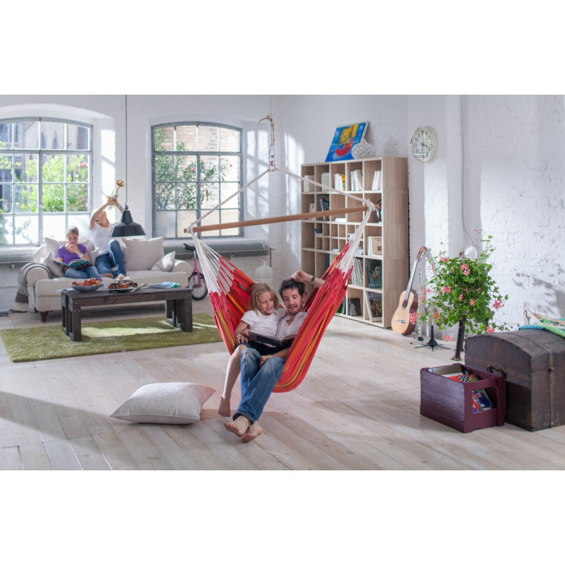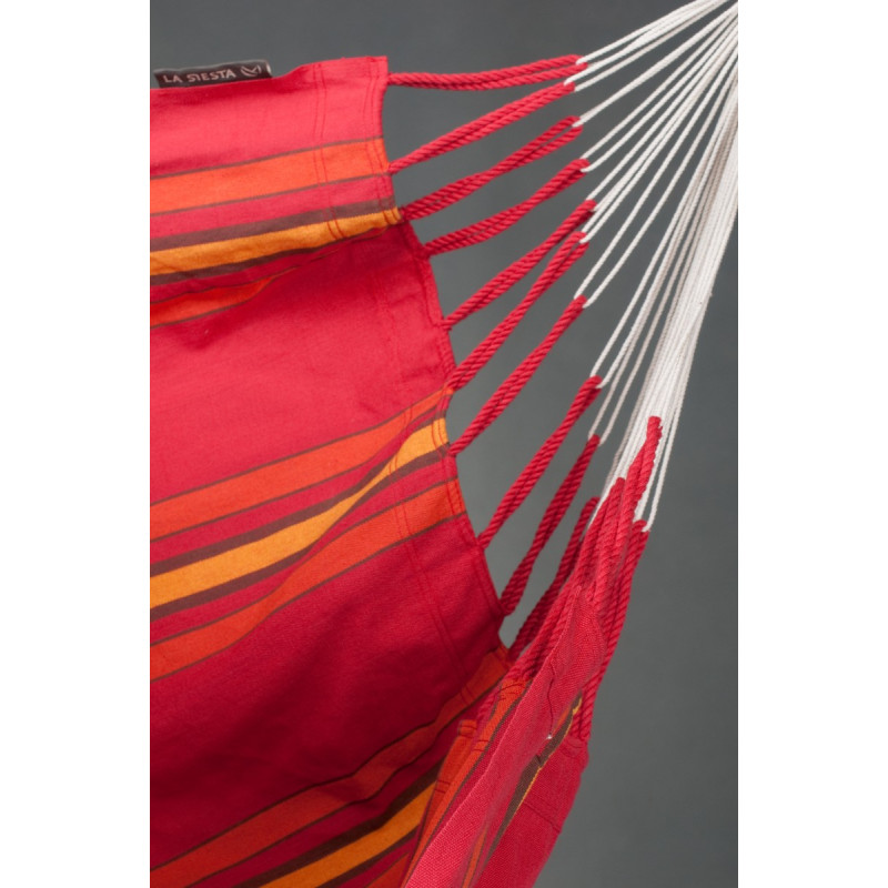 Разработанный и запатентованный фирмой La Siesta встроенный вертлюг обеспечивает дополнительный комфорт и безопасность. Он позволяет вращаться по оси. При этом шнуры для подвешивания не переплетаются.