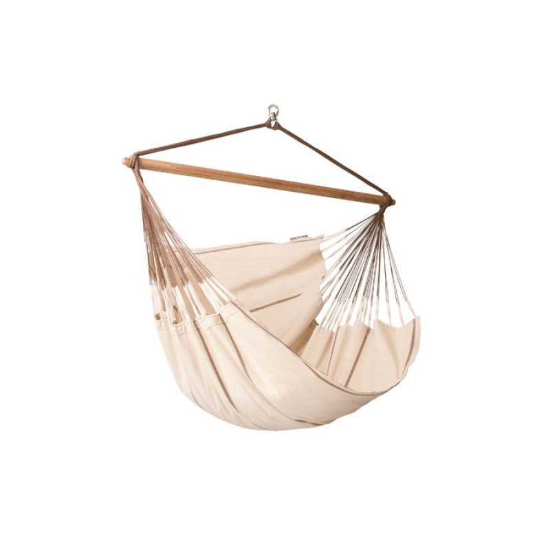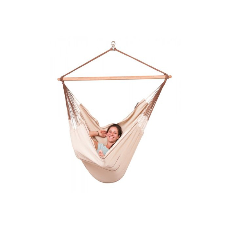 Разработанный и запатентованный фирмой La Siesta встроенный вертлюг обеспечивает дополнительный комфорт и безопасность. Он позволяет вращаться по оси. При этом шнуры для подвешивания не переплетаются.