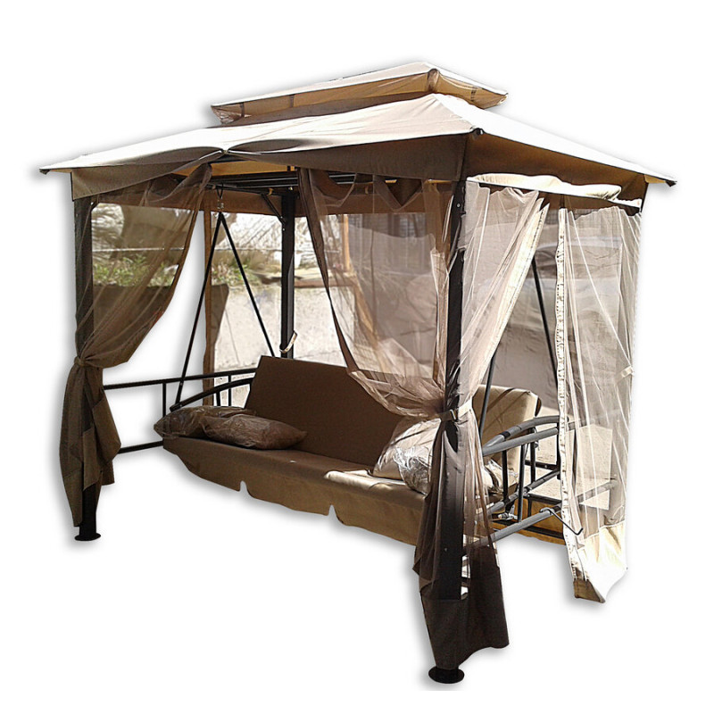 Дана модель-ідеальний варіант для відпочинку в саду. Зручна відкидна спинка дозволить розкласти гойдалки в лежаче положення. Фіксатор дозволить закріпити лавочку гойдалки в нерухомому стані. Москітна сітка, яка є в комплекті, захистить з з усіх боків від комарів і комах. Навантаження 250 кг дозволить вільно сидіти 3-м дорослим людям. З відкинутою спинкою дозволить полежати доїм.