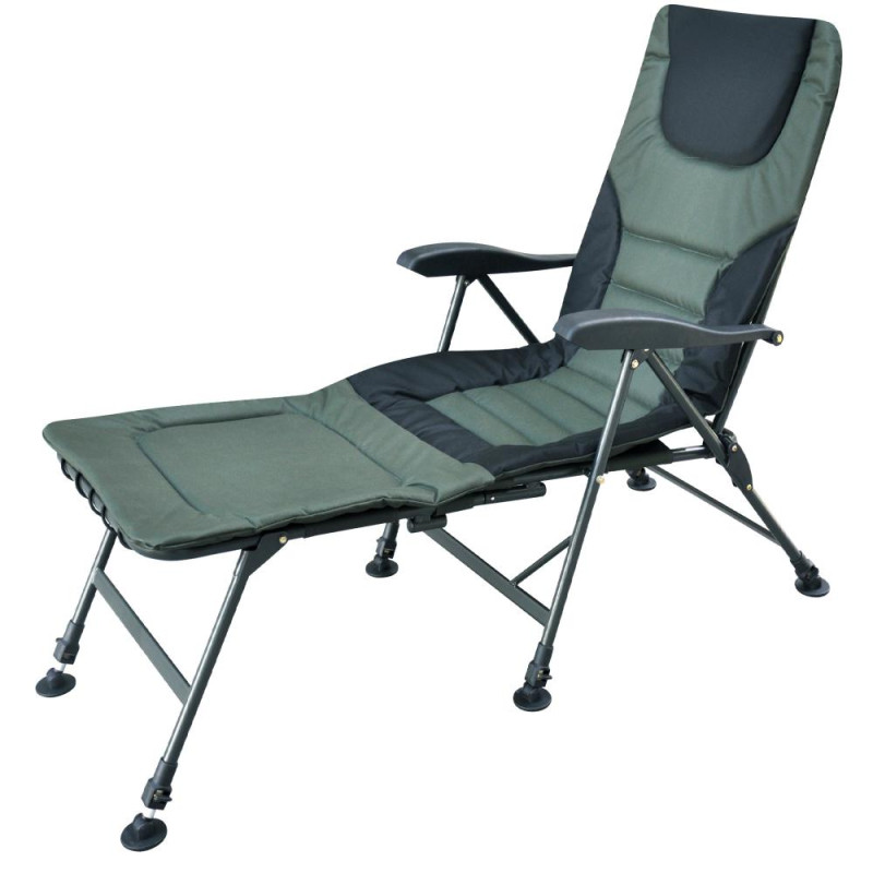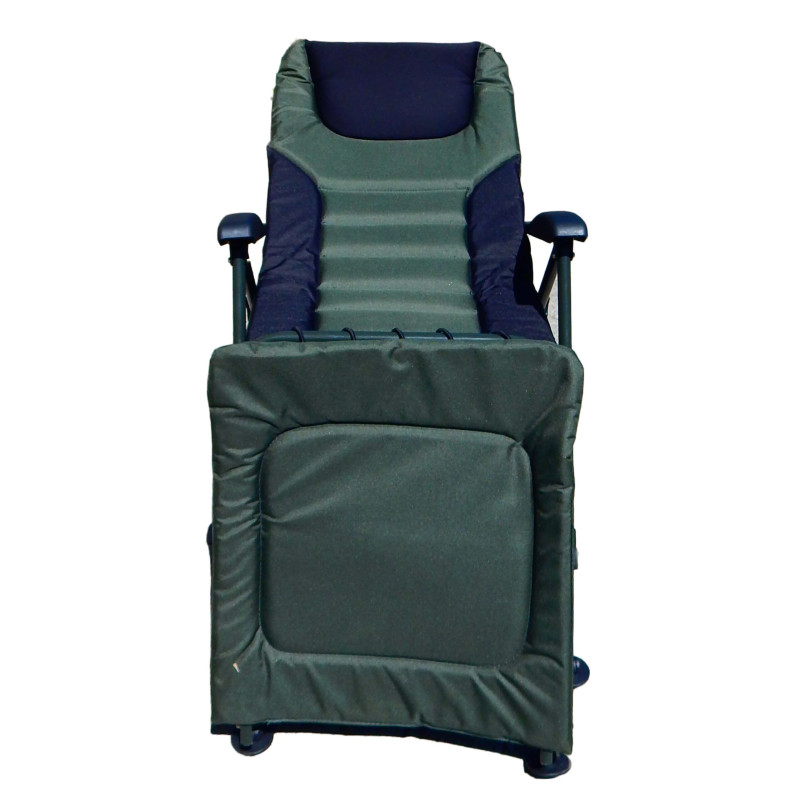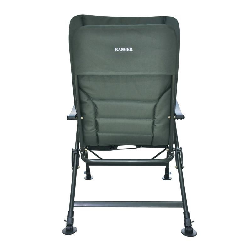 Карповое кресло- кровать Ranger SL-104 – идеальный выбор для рыбака. Больше не нужно возить с собой отдельно раскладушка. Главное его достоинство в том, что кресло легко можно превратить в раскладушку-при помощи приставки. Так же можно отрегулировать каждую ножку на нужную высоту и под любым углом, чтобы кресло на любой неровной поверхности располагалось ровно. Ножки устойчивы и не погружаются в грунт. Стальная конструкция кресла мощная и, в то же время, максимально облегчена за счёт пластиковых подлокотников.Спинка регулируется под любым углом , это можно делать не вставая из кресла, при помощи подлокотников. Благодаря тому, что конструкция кресла крепится болтами, можно легко снять ткань для стирки и без проблем крепить обвесы для рыбалки.Кресло-раскладушка для отдыха на рыбалке и природе, на даче и во дворе. Компактно складывается для хранения и транспортировки.Пятаки на ножках увеличенной площади -9 cм, большая площадь не позволяет погружаться в землю или песокХарактеристики:— ткань кресла: двойная ткань Оксфорд 600D с мягким наполнителем;— цвет ткани: зеленый, черный;— каркас: стальная труба Ø19мм;— цвет каркаса: черный, серый;— размер в разложенном виде: 70-99х60 см (ВхШ); с приставкой 167х59 см (ДхШ);— размер сиденья: 52х49 см (ШхГ);— размеры приставки: 52х58 см (ШхГ);— высота спинки от сиденья: 65 см;— высота от пола до сиденья: 41-57 см;— выдвижные ножки: 10 см;— нагрузка: 140 кг;— комплектуется чехлом;— размер упакованного кресла: 63х24х92 см (ВхГхШ);— вес: 6,2 кг.