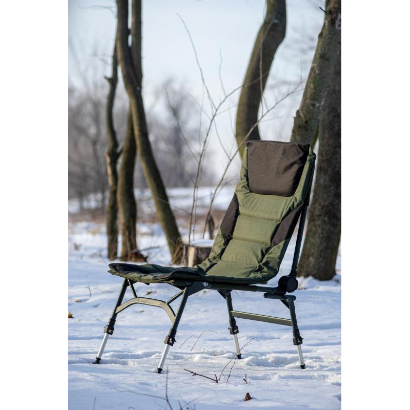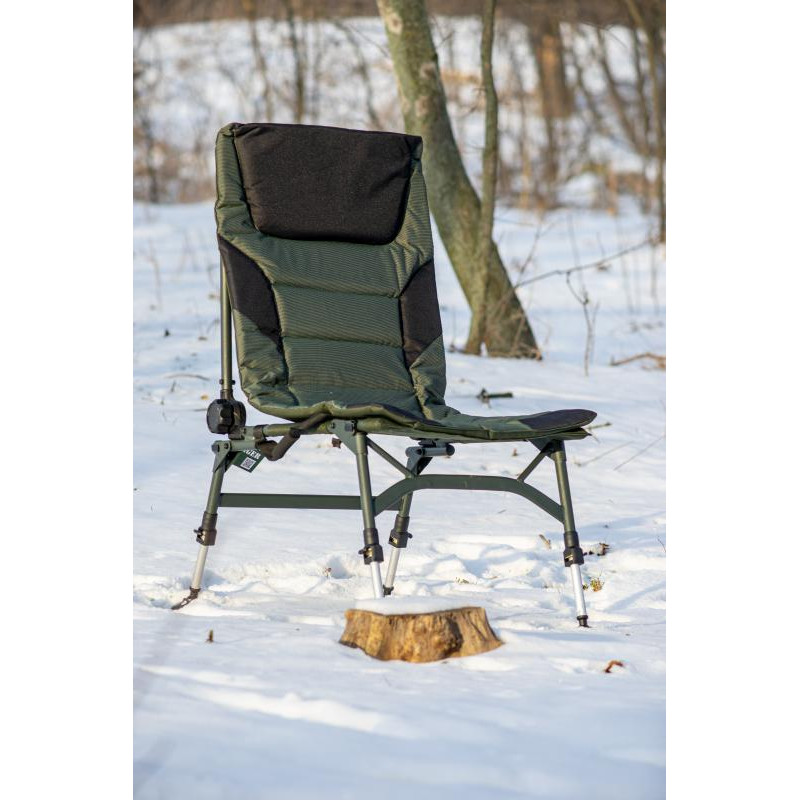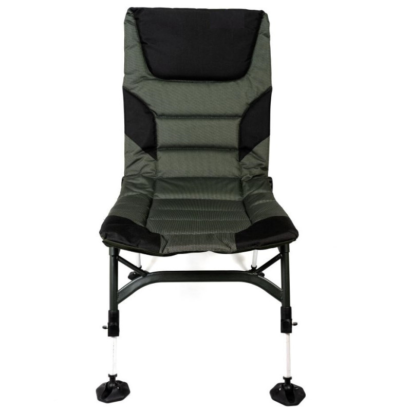 ЛКарповое кресло Ranger Chester — удобное и компактное. Основные преимущества : это наклон спинки и возможность отрегулировать каждую ножку на нужную высоту, чтобы кресло на любой неровной поверхности располагалось ровно. Стальная конструкция кресла мощная, дополнительно усилена трубой, что позволяет выдерживать большую нагрузку. Спинка регулируется в любом положении. Можно крепить обвесы и всевозможные приспособления для рыбалки. Для большего удобства транспортирования имеется сбоку ручка, Вам больше нет необходимости отдельно покупать чехол.Отличное сочетание цены и комфорта. Оснащен мягкими накладками на трубы каркаса. Кресло выполнено в строгом темно зеленом цвете и подголовником черного цвета, внутри мягкий наполнитель. Для большей устойчивости предусмотрены пятаки на ножках- 9 см.Кресло можно использовать для отдыха на природе, на даче и во дворе. Компактно складывается для хранения и транспортировки. Комплектуется чехлом.Характеристики:— ткань кресла: Оксфорд 600D с мягким наполнителем;— цвет: темно-зеленый;— каркас: стальная труба Ø22мм;— размер в разложенном виде: 89-95х76х50 см (ВхГхШ);— размер в сложенном виде: 63х18х54 см (ВхГхШ);— размер сиденья: 50х50 см (ГхШ);— высота сиденья: от пола 32-41 см;— высота спинки: от сиденья 56 см;— размер выдвижных ножек: 10 см;— комплектуется чехол;— вес: 5,3 кг;— нагрузка: 150 кг.