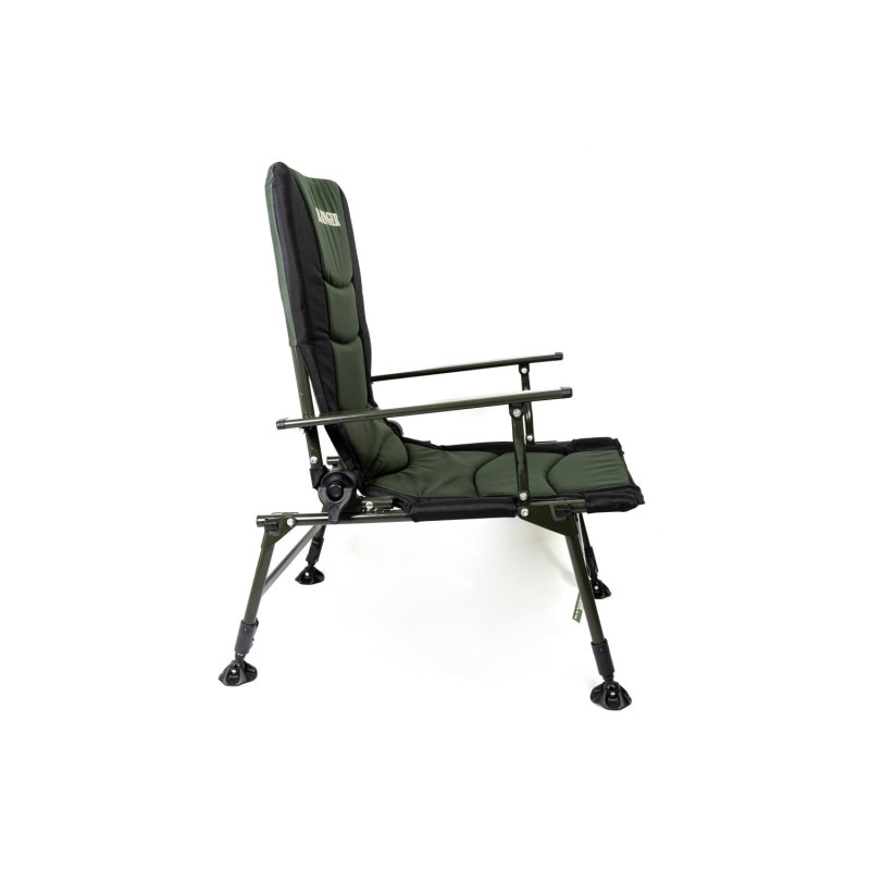 Карповое кресло Ranger Сombat SL-108 — рыбаки оценят данную модель, так как можно отрегулировать по высоте и наклону каждую ножку. На неровных поверхностях это очень актуально. Также спинку можно регулировать по желанию, опускать до положения лёжа, и использовать кресло как раскладушку, тем более, что мягкий наполнитель создаёт приятные ощущения во время отдыха.Кресло крепится болтами, что позволяет без труда повесить на подлокотниках всевозможные обвесы для рыбалки. А ещё таким же образом легко снять ткань для стирки. Нижняя часть спереди усилена дополнительными трубками, что позволяет выдерживать большие нагрузки веса людей.Каркас изготовлен из стальных трубок диаметром 19-22 мм. Пятаки на ножках — 7 см, Спинка регулируется при помощи фиксаторов-защелок, намного быстрее можете регулировать в отличии от фиксаторов- закруток.Отличное сочетание цены и комфорта. Оснащен мягкими накладками на трубы каркаса. Кресло выполнено в строгом темно зеленом цвете и подголовником черного цвета, внутри мягкий наполнитель.Кресло можно использовать для отдыха на природе, на даче и во дворе. Компактно складывается для хранения и транспортировки.Оснащено дополнительно ручкой для удобной транспортировки.Характеристики:— ткань кресла: Оксфорд 600D с мягким наполнителем;— цвет: темно-зеленый;— каркас: стальная труба Ø22мм;— размер в разложенном виде: 90-101х85х59 см (ВхГхШ);— размер в сложенном виде: 19х71,5х58 см (ВхГхШ);— размер сиденья: 50,5х46,5 см (ГхШ);— высота сиденья: от пола 35-45 см;— высота спинки: от сиденья 61 см;— размер выдвижных ножек: 10 см;— размер упаковки: 63х19х74 см (ВхГхШ);— вес: 6,3 кг;— нагрузка: 130 кг.Видеообзор :[embed]https://youtu.be/xnQFBNZcAMk[/embed
