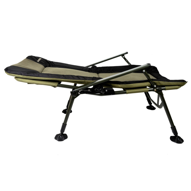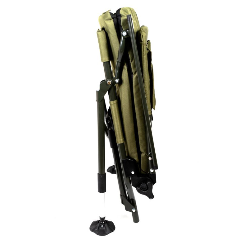 Карповое кресло Ranger Strong SL-107 – огромное, мягкое и очень широкое карповое кресло. Основное его достоинство в том, что имеет флисовую средину, которая придает комфорт во время долгой рыболовной сессии. Конструкция усилена дополнительно металлическими распорками, что позволяет сидеть в кресле с очень большой комплекцией. Кресло легко располагается на любой неровной поверхности, за счет регулирующихся ножек, есть возможность поднять на нужную высоту и под любой угол, Вы будете располагаться на поверхности ровно. Ножки устойчивы и не погружаются в грунт, за счет увеличенной площади . Стальная конструкция кресла мощная и, в то же время, максимально облегчена за счёт алюминиевых подлокотников. В задней части кресла расположен большой карман, для размещения мелких вещей. Снизу сидение кресло усилено резинками натяжения, для того чтоб кресло не провисало. Мягкий наполнитель — флис придает еще больше комфорта и процесс и удобства.Спинка регулируется под любым углом и тогда кресло можно использовать как раскладушку. Благодаря тому, что конструкция кресла крепится болтами, можно легко снять ткань для стирки и без проблем крепить обвесы для рыбалки.Кресло для отдыха на природе, на даче и во дворе. Компактно складывается для хранения и транспортировки.Пятаки на ножках увеличенной площади -9 cм, большая площадь не позволяет погружаться в землю или песок.Характеристики:— ткань кресла: двойная ткань Оксфорд 600D с мягким наполнителем, флис;— цвет ткани: зеленый, черный;— толщина наполнителя: 4 см;— размер в разложенном виде: 70*97*104-115 см;— спинка: 63 см;— сиденье: 60х59 см;— высота от земли: 45-53 см;— выдвижные ножки: 11 см;— нагрузка: 160 кг;— размер упакованного кресла: 72х19х79 см (ВхГхШ);— вес: 7,7 кг.Видеообзор:[embed]https://youtu.be/sk3lVuWg1bA[/embed