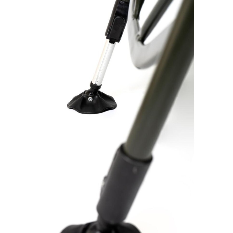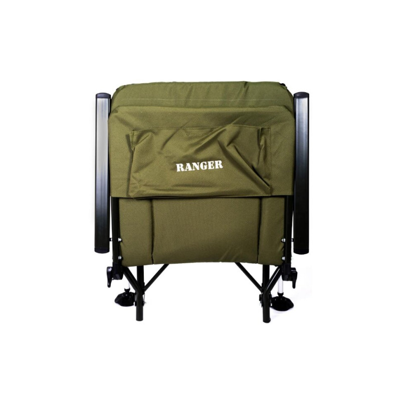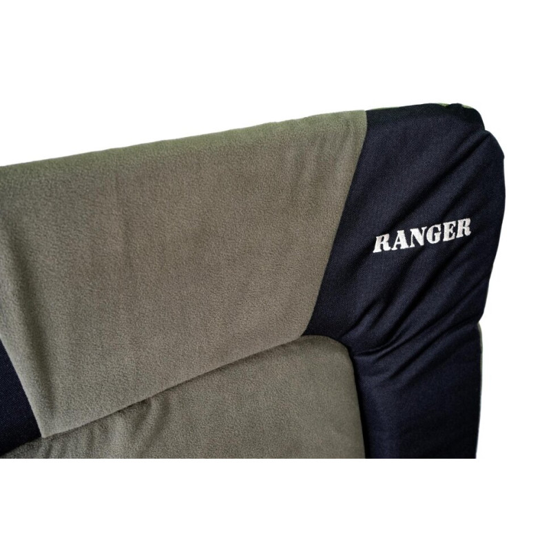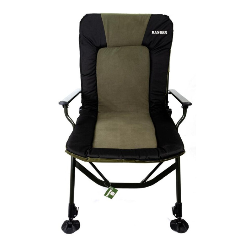 Коропове крісло Ranger Strong SL - 107-величезне, м'яке і дуже широке Коропове крісло. Основна його перевага в тому, що має флісову середину, яка надає комфорт під час довгої рибальської сесії. Конструкція посилена додатково металевими розпірками, що дозволяє сидіти в кріслі з дуже великою комплекцією. Крісло легко розташовується на будь-якій нерівній поверхні, за рахунок регулюються ніжок, є можливість підняти на потрібну висоту і під будь-який кут, ви будете розташовуватися на поверхні рівно. Ніжки стійкі і не занурюються в грунт, за рахунок збільшеної площі . Сталева конструкція крісла потужна і, в той же час, максимально полегшена за рахунок алюмінієвих підлокітників. У задній частині крісла розташована велика кишеня, для розміщення дрібних речей. Знизу сидіння крісло посилене гумками натягу, для того щоб крісло не провисало. М'який наповнювач-фліс надає ще більше комфорту і зручності.