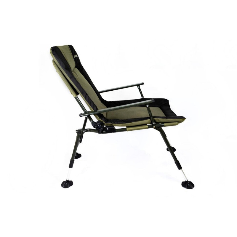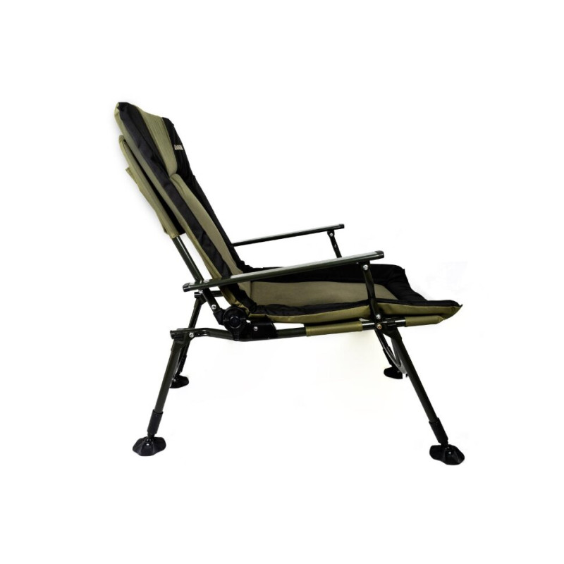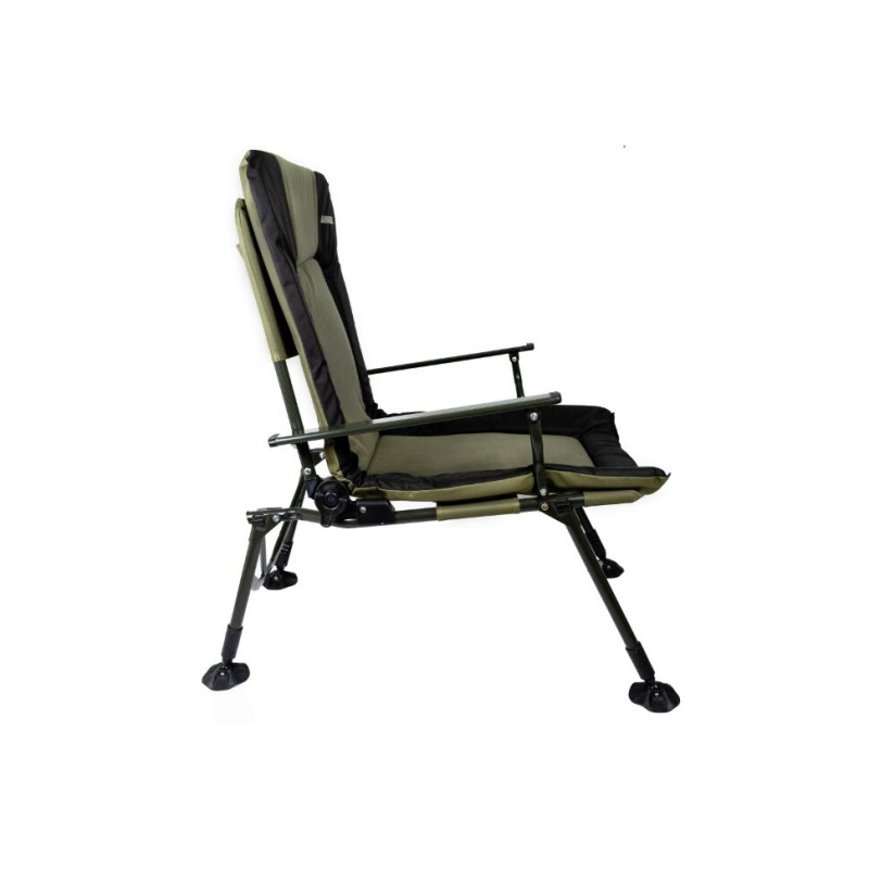 Спинка регулюється під будь-яким кутом і тоді крісло можна використовувати як розкладачку. Завдяки тому, що конструкція крісла кріпиться болтами, можна легко зняти тканину для прання і без проблем кріпити обважування для риболовлі.