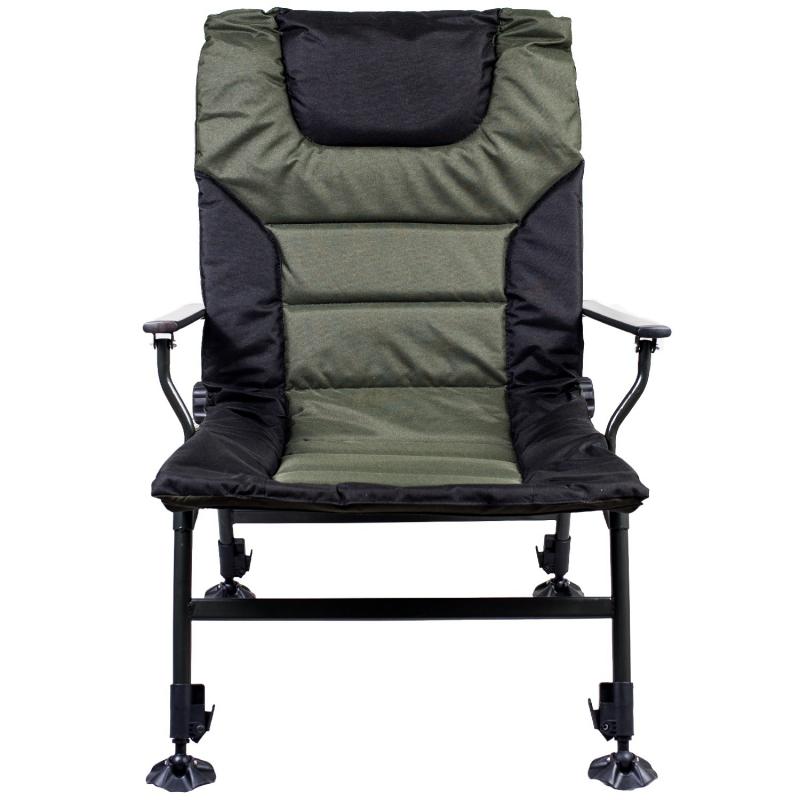 Карповое кресло Ranger Wide Carp SL-105 – самое большое и широкое карповое кресло для рыбака. Главное его достоинство в том, что можно отрегулировать каждую ножку на нужную высоту, чтобы кресло на любой неровной поверхности располагалось ровно. Ножки устойчивы и не погружаются в грунт, за счет увеличенной площади . Стальная конструкция кресла мощная и, в то же время, максимально облегчена за счёт алюминиевых подлокотников.Спинка регулируется под любым углом и тогда кресло можно использовать как раскладушку. Благодаря тому, что конструкция кресла крепится болтами, можно легко снять ткань для стирки и без проблем крепить обвесы для рыбалки.Кресло для отдыха на природе, на даче и во дворе. Компактно складывается для хранения и транспортировки.Пятаки на ножках увеличенной площади -9 cм, большая площадь не позволяет погружаться в землю или песок.Характеристики:— ткань кресла:двойная ткань Оксфорд 600D с мягким наполнителем;— цвет ткани: зеленый, черный;— Размер в разложенном виде 72*85*99 см— Спинка – 69 см— Сиденье – 60х59 см— Высота от земли – 35-44,5 см— выдвижные ножки: 10 см;— нагрузка: 160 кг;— комплектуется чехлом;— размер упакованного кресла: 73х20х70 см (ВхГхШ);— вес: 7,5 кг.
