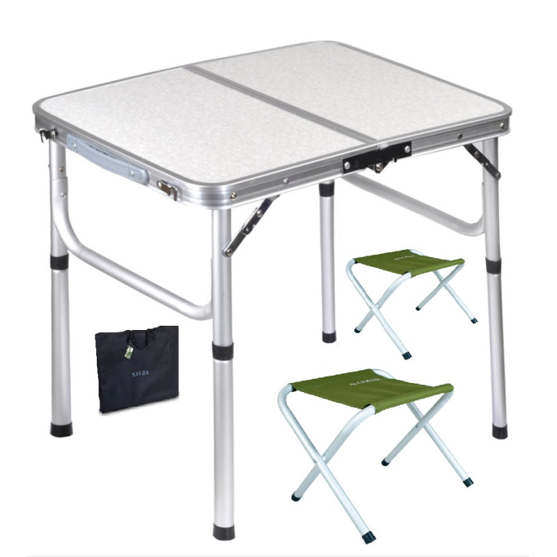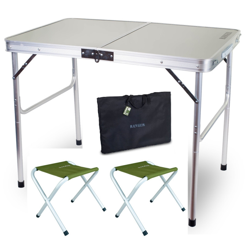 Комплект мебели складной Ranger ST 201— это стол с двумя табуретками идеальное решение для поездок за город или отдыха на свежем воздухе, для двух человек. Стол и стульчики очень просто и быстро раскладываются и складываются. Выезжая на отдых, за город, или пикник, или, на рыбалку, возьмите с собой комплект мебели складной Ranger ST 201 и отдых будет незабываем и удобен. За столом спокойно смогут разместиться до 4 человек, а для 2-х это будет очень просторно. Места для хранения столу нужно совсем немного и в багажнике легкового авто, всегда найдётся место. Стол складывается пополам так, что превращается в небольшой чемоданчик, стульчики вкладываются внутрь и нет необходимости возить их отдельно.Столешница из ламинированного ДВП.Лёгкий, удобный, устойчивый стол ещё и регулируется по высоте в двух положениях. Алюминиевый профиль увеличенной ширины — 50 мм. Комплектуется чехлом.В сложенном виде занимает очень мало место, внутрь стола могут поместиться 2 стульчика.Характеристики:— рама стола: алюминий Ø25 мм, ширина профиля — 50 мм;— рама стула: алюминиевая труба Ø 22 мм;— ткань стула: полиэстер 600D;— цвет стола: серый;— цвет стула: ткань — зеленый, каркас — серый;— размер стула в разложенном виде: 34,5х29,5х41,5 см (ВхГхШ);— размер стула в сложенном виде: 46х3х41,5 см (ВхГхШ);— размер сиденья: 29,5х29 см (ГхШ);— высота сиденья: от пола 34,5 см;— вес стула: 0,5 кг;— размер столешницы в разложенном виде: 5х60х90 см (ВхГхШ);— высота стола: 1-е положение – 37 см; 2-е положение – 70 см;— размер стола в сложенном виде: 10х45х60 см (ВхГхШ);— нагрузка на стол: 40 кг;— нагрузка на стул: 130 кг;— вес стола: 5,5кг.