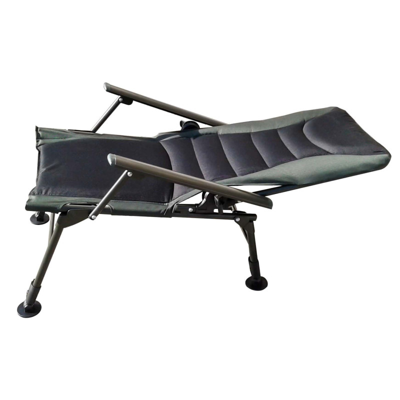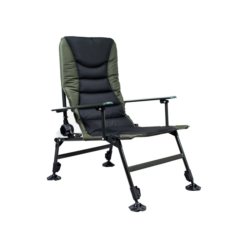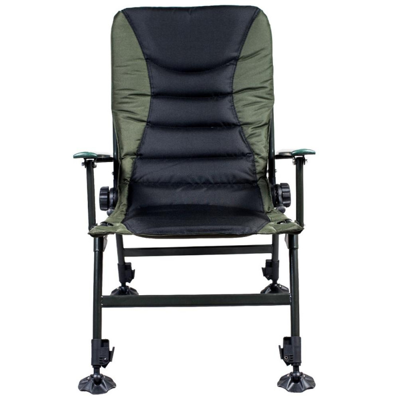 Заядлые рыбаки высоко оценили карповое кресло Ranger SL-102. Эта модель удобна, так как можно отрегулировать по высоте и наклону каждую ножку. На неровных поверхностях это очень актуально. Также спинку можно регулировать по желанию, опускать до положения лёжа, и использовать кресло как раскладушку, тем более, что мягкий наполнитель создаёт приятные ощущения во время отдыха.Кресло крепится болтами, что позволяет без труда повесить на подлокотниках всевозможные обвесы для рыбалки. А ещё таким же образом легко снять ткань для стирки.Каркас изготовлен из стальных трубок диаметром 19-20 мм, а подлокотники из алюминия.Карповое кресло компактно складывается, что очень удобно для хранения и перевозки в авто.Кресло полюбили не только рыбаки. Его облюбовали многие любители комфортабельного отдыха на природе.Пятаки на ножках увеличенной площади -9 cм, большая площадь не позволяет погружаться в землю или песокХарактеристики:— ткань кресла:двойная ткань Оксфорд 600D с мягким наполнителем;— цвет ткани: зеленый, черный;— Спинка – 62 см— Сиденье – 48х42 см— Высота от земли – 35-44,5 см— выдвижные ножки: 10 см;— нагрузка: 150 кг;— комплектуется чехлом;— размер упакованного кресла: 63х20х74 см (ВхГхШ);— вес: 6,2 кг.