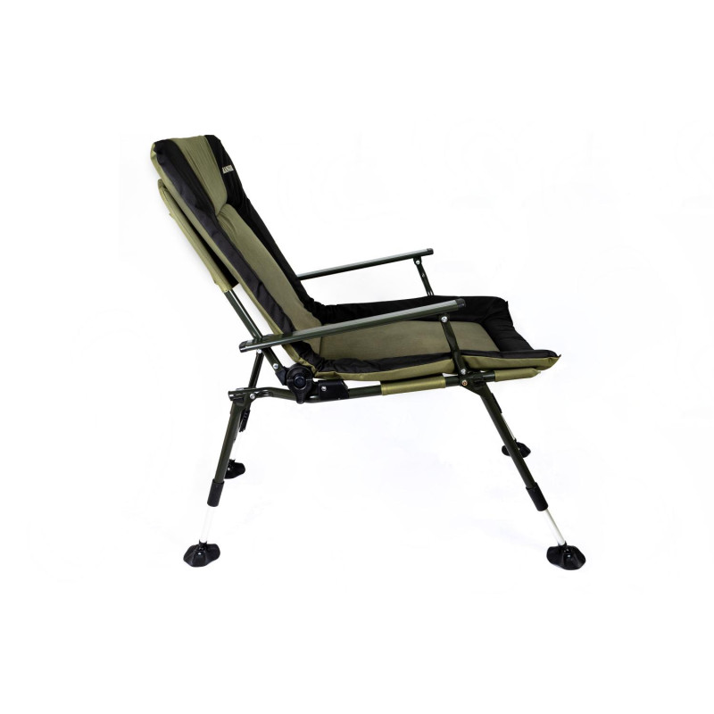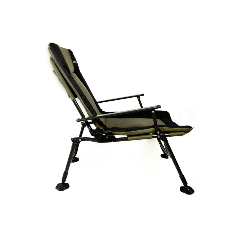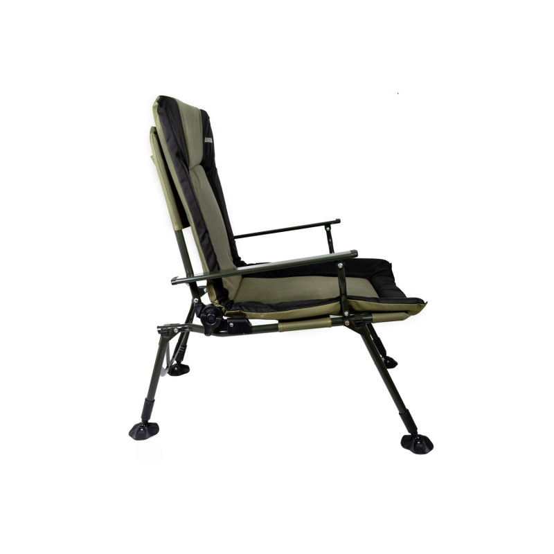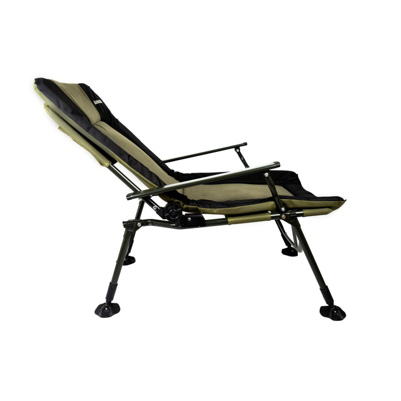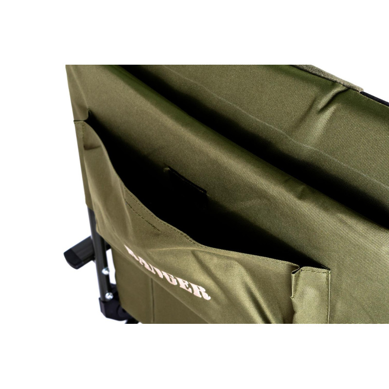 Карповое кресло Ranger Strong SL-107 – огромное, мягкое и очень широкое карповое кресло. Основное его достоинство в том, что имеет флисовую средину, которая придает комфорт во время долгой рыболовной сессии. Конструкция усилена дополнительно металлическими распорками, что позволяет сидеть в кресле с очень большой комплекцией. Кресло легко располагается на любой неровной поверхности, за счет регулирующихся ножек, есть возможность поднять на нужную высоту и под любой угол, Вы будете располагаться на поверхности ровно. Ножки устойчивы и не погружаются в грунт, за счет увеличенной площади . Стальная конструкция кресла мощная и, в то же время, максимально облегчена за счёт алюминиевых подлокотников. В задней части кресла расположен большой карман, для размещения мелких вещей. Снизу сидение кресло усилено резинками натяжения, для того чтоб кресло не провисало. Мягкий наполнитель — флис придает еще больше комфорта и процесс и удобства.Спинка регулируется под любым углом и тогда кресло можно использовать как раскладушку. Благодаря тому, что конструкция кресла крепится болтами, можно легко снять ткань для стирки и без проблем крепить обвесы для рыбалки.Кресло для отдыха на природе, на даче и во дворе. Компактно складывается для хранения и транспортировки.Пятаки на ножках увеличенной площади -9 cм, большая площадь не позволяет погружаться в землю или песок. Комплектуется чехлом.Характеристики:— ткань кресла: двойная ткань Оксфорд 600D с мягким наполнителем, флис;— цвет ткани: зеленый, черный;— толщина наполнителя: 4 см;— размер в разложенном виде: 70*97*104-115 см;— спинка: 63 см;— сиденье: 60х59 см;— высота от земли: 45-53 см;— выдвижные ножки: 11 см;— нагрузка: 160 кг;— размер упакованного кресла: 72х19х79 см (ВхГхШ);— вес: 7,7 кг.Комплектуется чехлом.Видеообзор:[embed]https://youtu.be/sk3lVuWg1bA[/embed