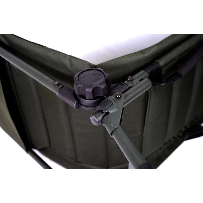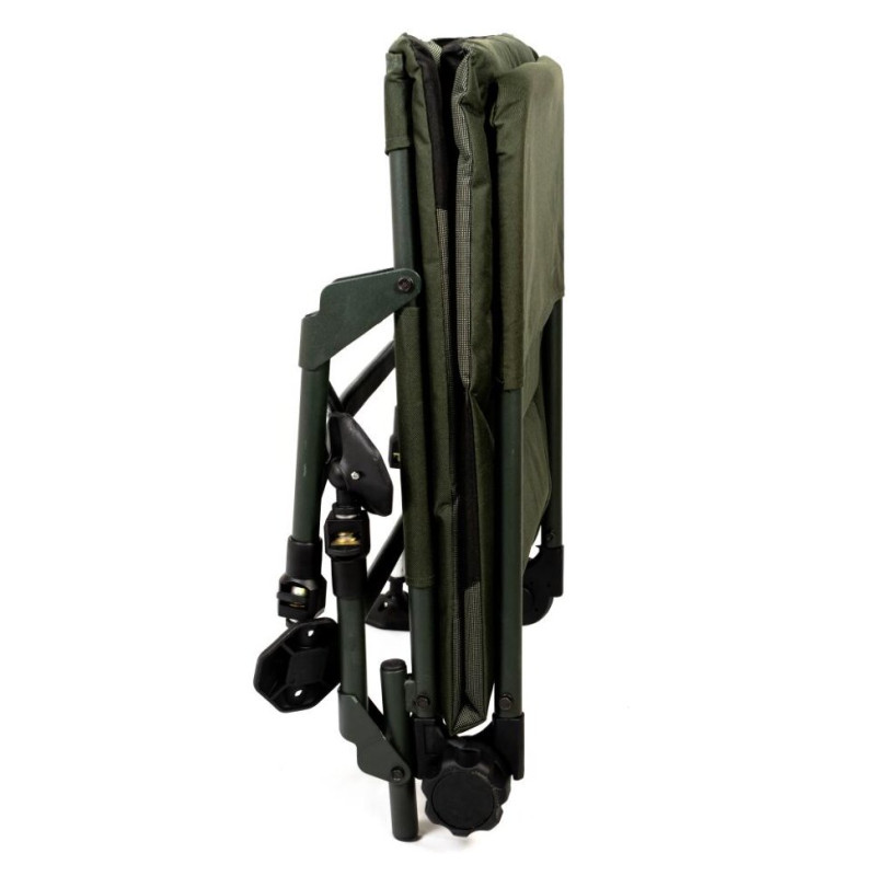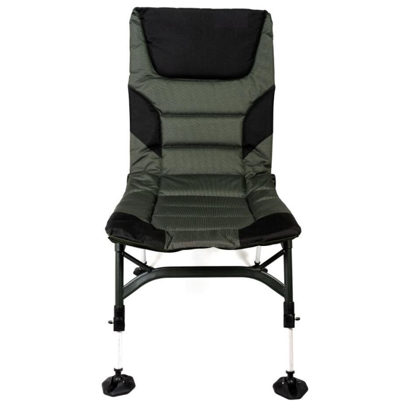 Сталева конструкція крісла потужна, додатково посилена трубою, що дозволяє витримувати велике навантаження. Спинка регулюється в будь-якому положенні. Можна кріпити обважування і всілякі пристосування для риболовлі. Для більшої зручності транспортування є збоку ручка, Вам більше немає необхідності окремо купувати чохол.