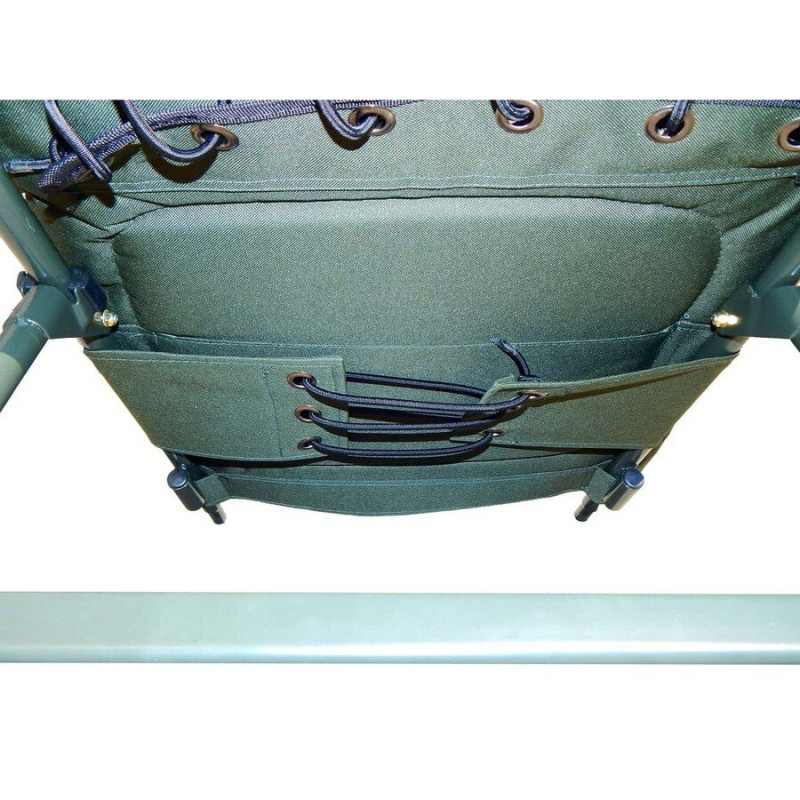 Спинка регулюється під будь-яким кутом , це можна робити не встаючи з крісла, за допомогою підлокітників. Завдяки тому, що конструкція крісла кріпиться болтами, можна легко зняти тканину для прання і без проблем кріпити обважування для риболовлі.