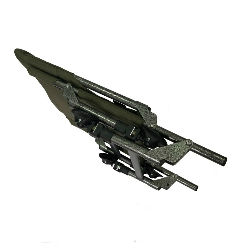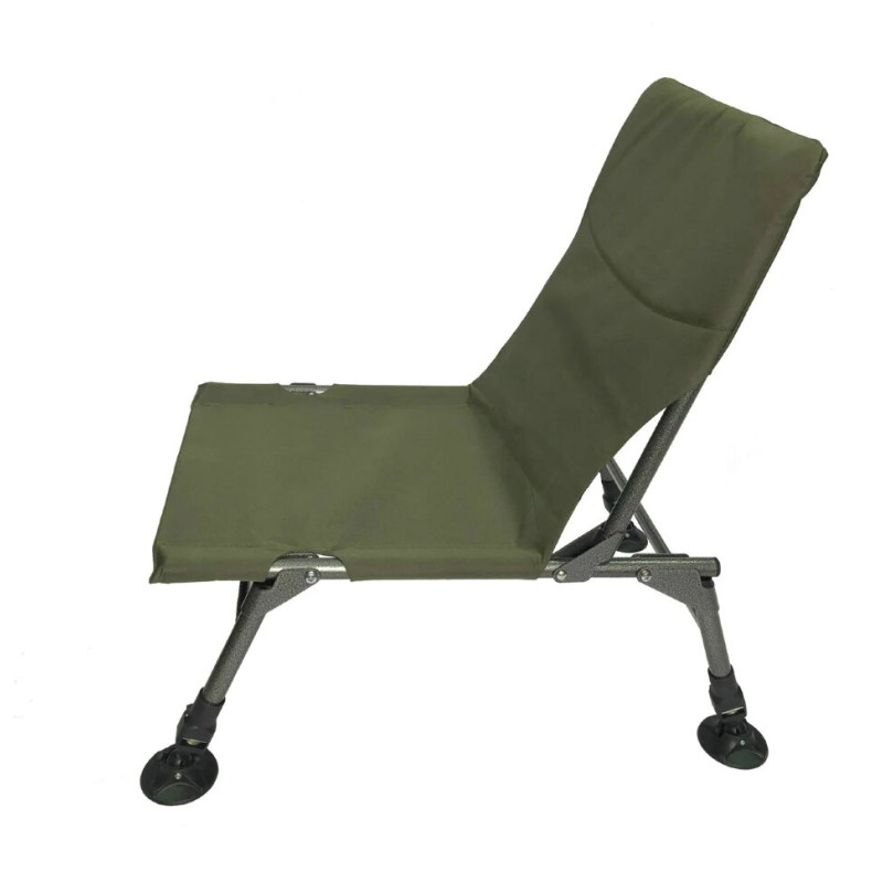 Крісло виготовлено з надзвичайно міцного водонепроникного матеріалу кольору хакі. Дане крісло зробить вашу риболовлю чистим задоволенням. Не викликає проблем при транспортуванні, так як в складеному вигляді займає мало місця. Розміри становлять 72 х 48 х 15 см