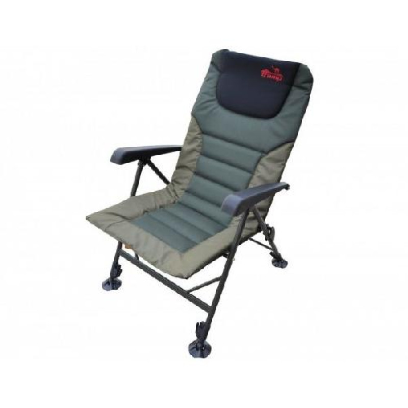 Крісло, зручно для відпочинку, легко складається і займає мінімум місця при транспортуванні. Спинка вкрита неопреном. Регульовані ніжки збільшеної площі.