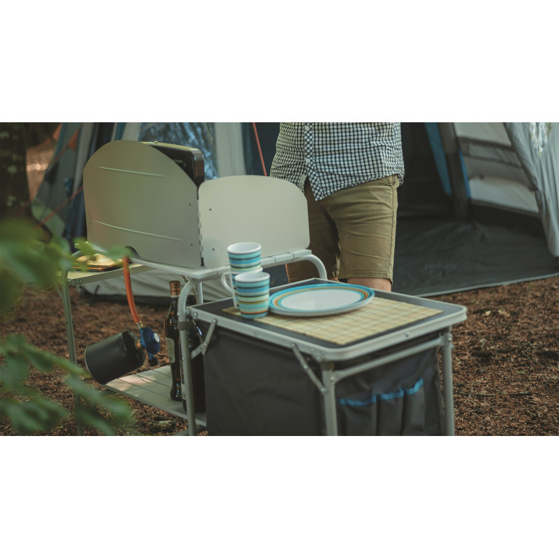 Отдых в палаточном городке не обходится без приготовления пищи. Кемпинговая кухня Easy Camp Sarin Blue (540014) позволит ускорить и оптимизировать этот процесс, сделав его более удобным и организованным. Конструкция имеет устойчивую стальную раму, боковые столики для готовки, встроенную ветрозащиту и шкаф с полками для хранения кастрюль, сковородок, посуды и еды в одном месте. Кухня проста в установке и аккуратно упаковывается в чехол для переноски и компактного хранения.