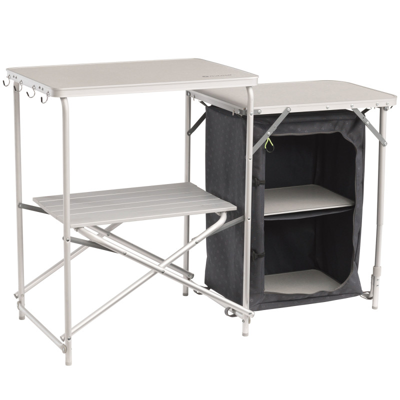 Отдых в палаточном городке не обходится без приготовления пищи. Кемпинговая кухня Outwell Samos Kitchen Table Indigo Blue (531146) позволит ускорить и оптимизировать этот процесс, сделав его более удобным и организованным. Кухня имеет две рабочих поверхности на разных уровнях, что гораздо функциональней по сравнению с одной той же самой площади. Для хранения посуды и продуктов предусмотрен закрывающийся на молнию текстильный шкаф с двумя полками, а также дополнительная горизонтальная полка. Ламинированные столешницы легко моются, но не следует оставлять их под сильным дождем или на жарком солнце. Располагая этим широким функционалом, кухня компактно складывается для удобного хранения и транспортировки. Outwell Samos Kitchen Table Indigo Blue (531146) создаст желаемый уровень комфорта, где бы Вы ни были: в кемпинговом лагере, на даче или просто на природе.