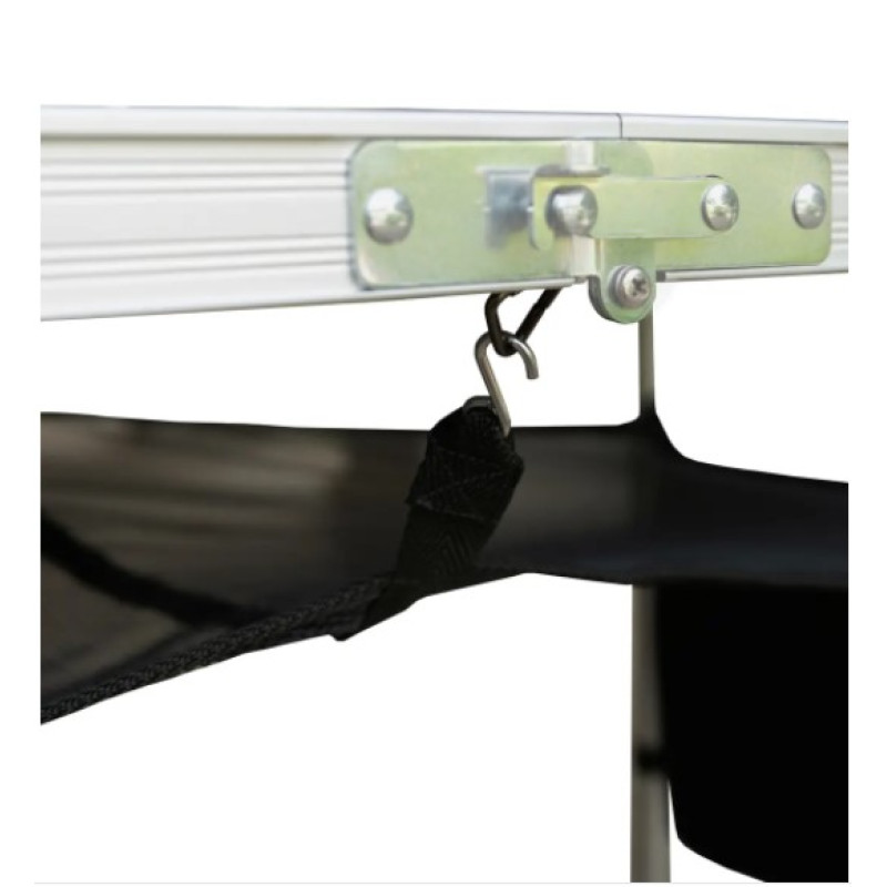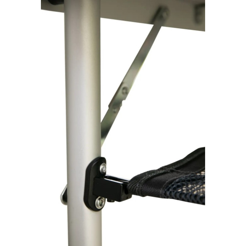 Стіл укомплектований широкою підвісною сітчастою полицею яка кріпитися під стільницею.