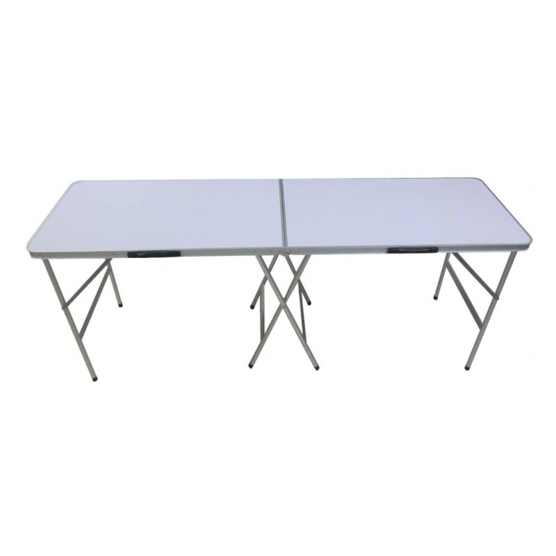Виріб складається з двох стільниць, виконаних з МДФ панелей (товщина – 4,2 мм), загальною довжиною 198 см (ширина і висота – 60х78 см відповідно). Ніжки виконані з алюмінієвого профілю, діаметром 22 мм МДФ плити - прекрасний вибір для стільниць. Матеріал поєднує в собі цінову доступність, міцність і довговічність. Завдяки характеристикам панелей, стіл довго збереже зовнішній вигляд.
