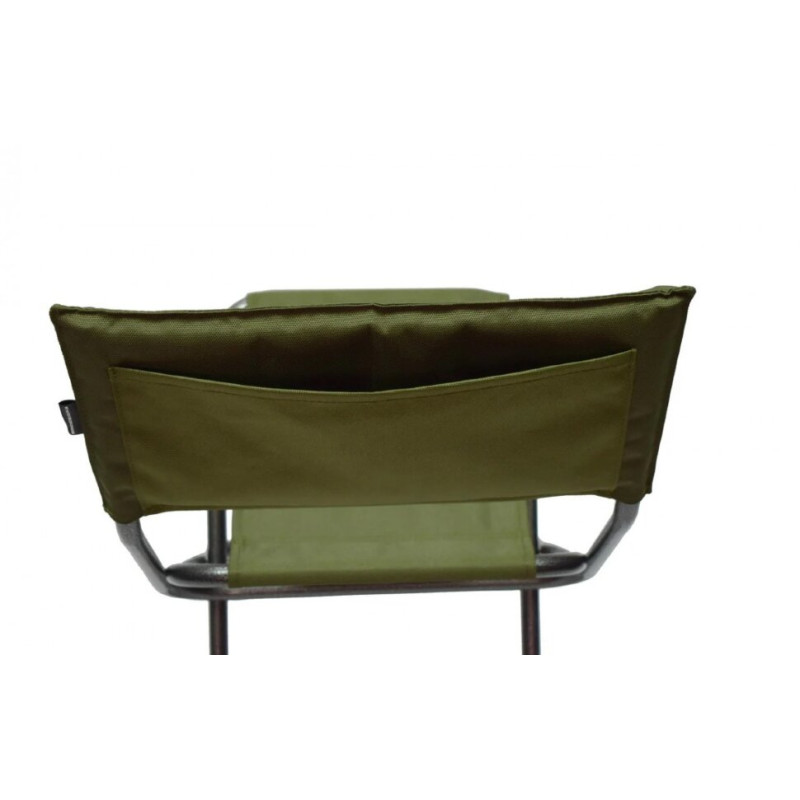 Найчастіше його використовують рибалки, адже він дуже легкий і зручний. Для більшого комфорту стілець обладнаний відкидною спинкою з м'яким наповнювачем, задня частина якої оснащена великою кишенею для зберігання різних речей.