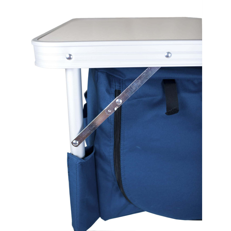 Выезжая на пикник, мы предполагаем, что приготовим на костре что-то особенное – фирменную уху, шашлык, печённые на мангале овощи. Хочется под руками иметь нужную посуду для приготовления, продукты и специи, без которых блюдо не будет полноценным. А также хочется сервировать стол удобной в походных условиях посудой.Стол тумба Ranger ТА-519 Rcase – это практически своя кухня на природе. Двухсекционная полка закрытого типа отлично подходит для хранения продуктов, посуды, одежды. Полка сделана из непромокаемого и очень прочной ткани. Каждая полка застёгивается молнией и имеет доступ с 2-х сторон, нет необходимости обходить стол, все под рукой всегда. Для плотности полки на дно укладывается пластины из пластика. По бокам есть ещё по три кармана для столовых приборов и других необходимых мелочей.При необходимости тумбу можно отстегнуть и постирать.Стол простой в раскладывании и сборке. В собранном виде он представляет собой чемодан с ручкой, что очень удобно в транспортировке, также комплектуется чехлом, для большей защиты.Снизу столешница усилена металлическими перемычками, для большей прочности.Чтобы стол самопроизвольно не складывался, имеются специальные фиксаторы.Для устойчивости стола на ножках имеются ломберные петли.Высоту стола можно регулировать в два положения.Эта модель стола будет самым незаменимым атрибутом на природе.Видеообзор по ссылке https://youtu.be/b23gh2tbRDkХарактеристики:— чехол: полиэстер 600D;— цвет чехла: синий, серый;— полка: полиэстер 600D, пластик;— размер полки в разложенном виде: 34х50х100 см (ВхГхШ)— рама стола: алюминий Ø22 и Ø25 мм;— размер столешницы в разложенном виде: 4х60х120 см (ВхГхШ);— высота стола: 1-е положение – 53 см; 2-е положение – 69 см;— размер стола в сложенном виде: 8х60х60 см (ВхГхШ);— нагрузка на столешницу: 30 кг;— вес комплекта: нетто/брутто 8,36/9.2 кг.[embed]https://youtu.be/b23gh2tbRDk[/embed