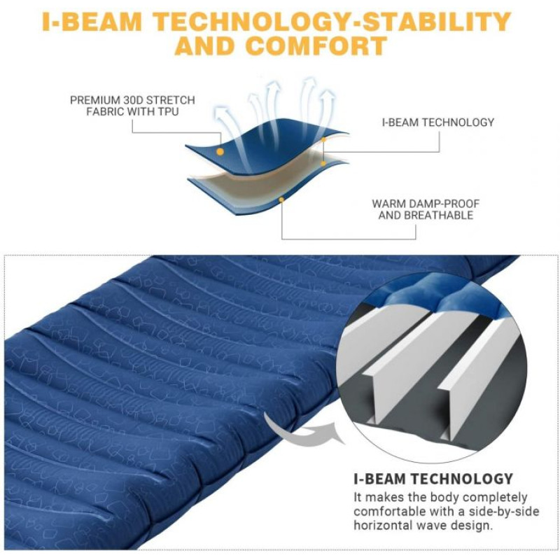 Толстая и волновая система для обеспечения комфорта: надувной мастрас для сна разработан с волновой системой и увеличивает толщину до 10 см, что обеспечивает вам комфорт, как дома.