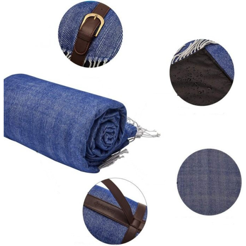 Велика ковдра для пікніка 200 x 150 см, складена всього 37 на 20 см з шкіряними ручками, зручна для перенесення і транспортування. Його також можна прати в пральній машині.
