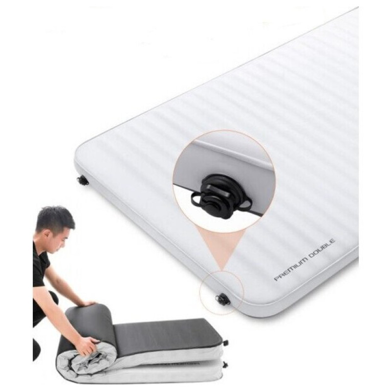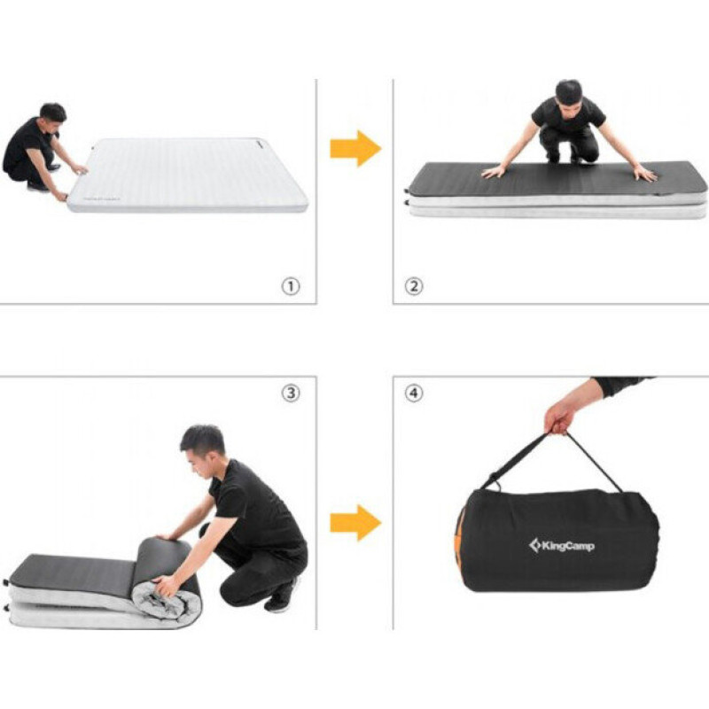 KingCamp PREMIUM DOUBLE (KM1901) LIGHTGREY/CHARCOAL - зручна альтернатива застарілим пінкам і громіздким надувним матраців і килимків. Він поєднує в собі легкість, зручність транспортування, комфорт сну і відмінні термоізоляційні властивості. Це робить його незамінним атрибутом піших походів і комфортного відпочинку на природі! Може використовуватися і в домашніх умовах, на дачі і в заміських будинках. Цей матрац для кемпінгу, посилений, вологостійкою, міцний, водонепроникний, з стійкою до розриву еластичною тканиною 30D і обробленої покриттям TPU. Покриття TPU забезпечує чудову ізоляцію і опір розтягуванню в порівнянні зі звичайним ПВХ. Самонадувний спальний килимок товщиною 7,5 см зігріває вас, захищаючи від холоду або від нерівностей каменів або нерівній холодної землі. Забезпечує оптимальний комфорт і тепло, необхідне вашому тілу для гарного сну на природі.