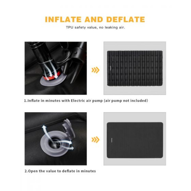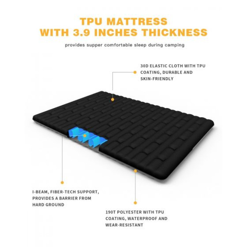 Двойной полностью надувной матрас размер 188 × 125 × 10 см, шире и толще, чем другие обычные матрасы. Воздушный спальный коврик толщиной 10 см удерживает вас от холода. Сверхлегкий и компактный, вес 2,1 кг, легкий для переноски, идеально подходит для любого активного отдыха, например, для пеших прогулок, путешествий или кемпинга. Изготовленный из полиэстера 190T и эластичной ткани 30D с покрытием TPU, этот матрас является водонепроницаемым, устойчивым к проколам и растяжению, экологически безопасен и долговечен в использовании в течение многих лет. Размер упаковки 32 х 15 х 15 см. Компрессионные ремни для удобной упаковки. В комплект входит ремонтный комплект (клей в комплект не входит).