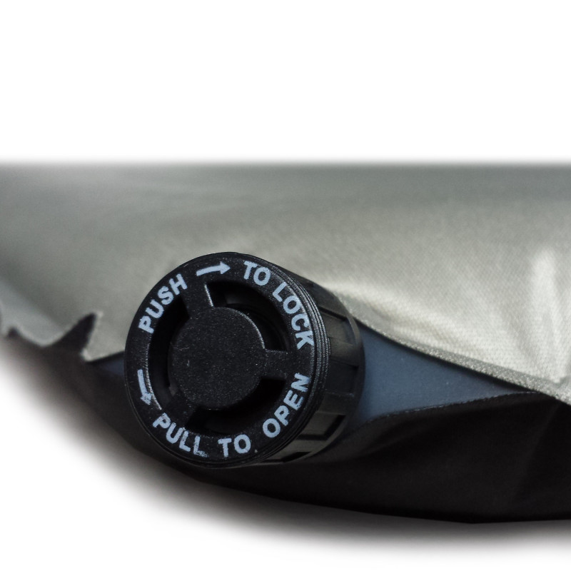 - Большой двусторонний клапан с фиксатором позволяет быстро надувать и сдувать коврик.