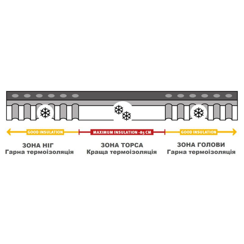 • Зональная технология Core Comfort Concept позволяет, благодаря перфорации наполнителя в зонах ног и головы, достичь минимального веса, не снизив при этом теплоизоляционные характеристики. В средней части коврика (в области торса) где осуществляется наибольшее давление, наполнитель не имеет перфорации, обеспечивая необходимую мягкость и теплоизоляцию.