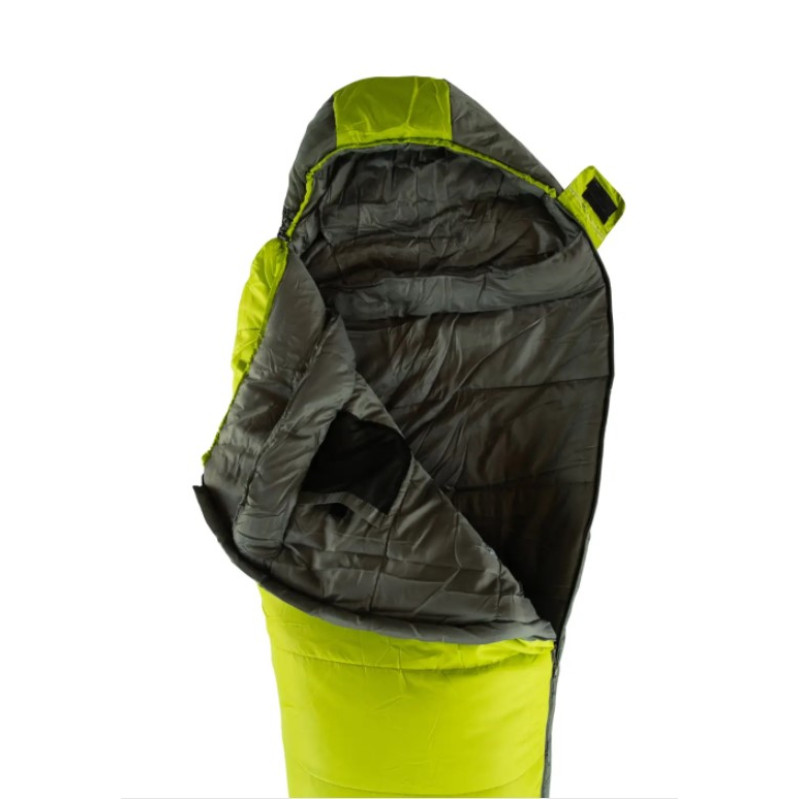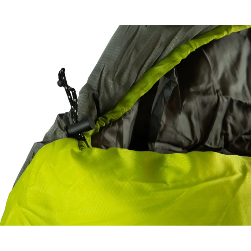 - Анатомічно розширена зона для ніг 3D Footbox. Нижня частина спальника має спеціальну трапецієподібну форму, яка створює простір для ваших ніг, забезпечуючи їх вільне розміщення в природному положенні, забезпечуючи більший комфорт під час сну, а також більше збереження тепла.